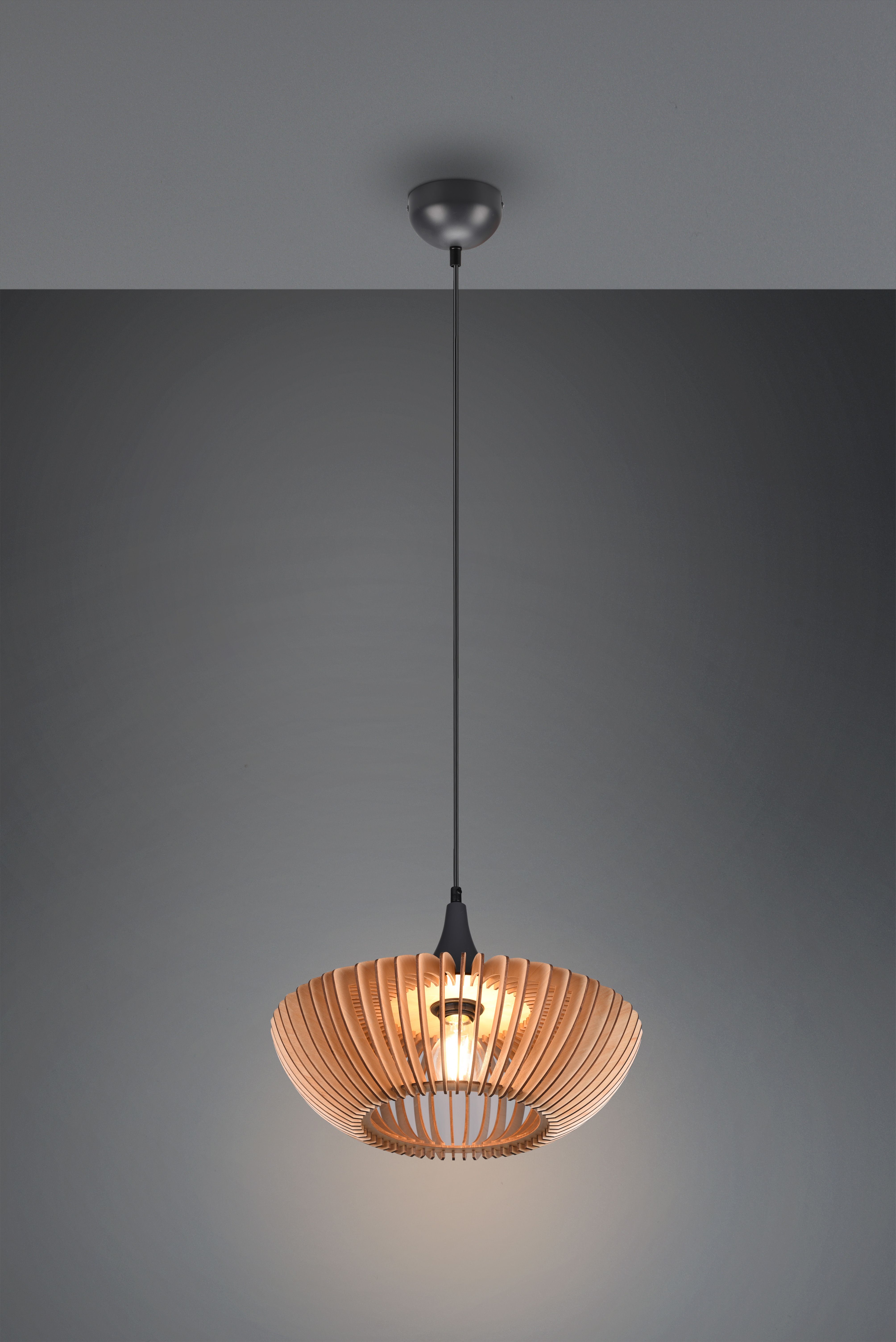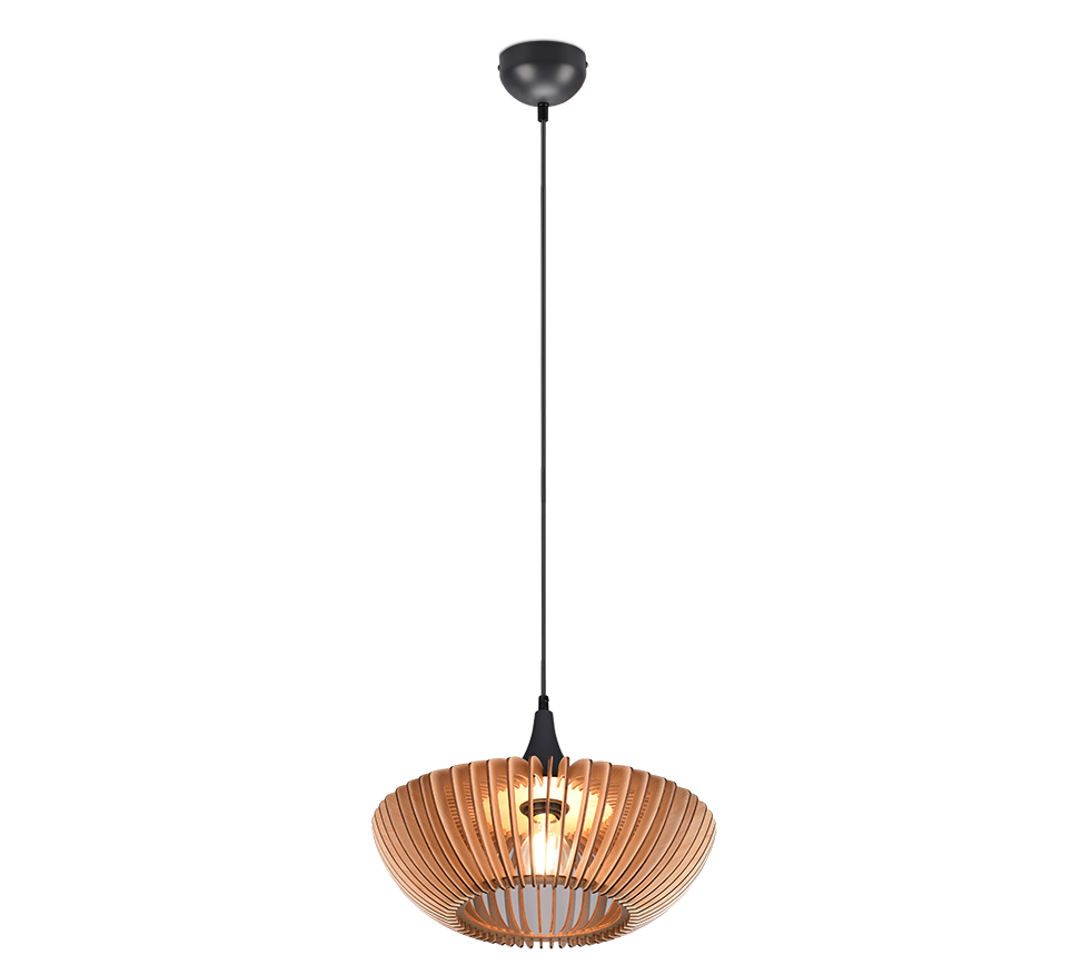 The COLINO pendant lamp radiates grace and elegance with its shade made of wooden slats.
