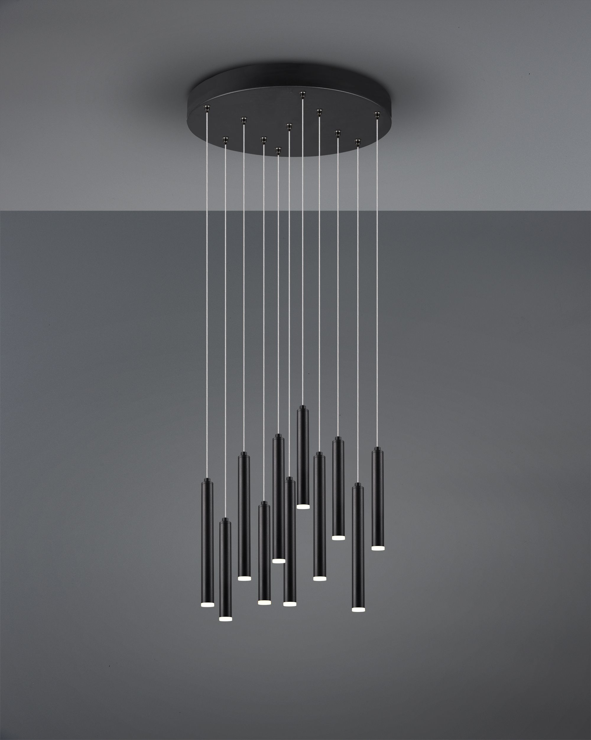 Μοντέρνο Κρεμαστό Φωτιστικό Μαύρο Ματ Ροζέτα 40xH150cm Led 11x2,8w 3000K 11x350lm Led Switch Dimmer Trio Lighting Tubular 321691132