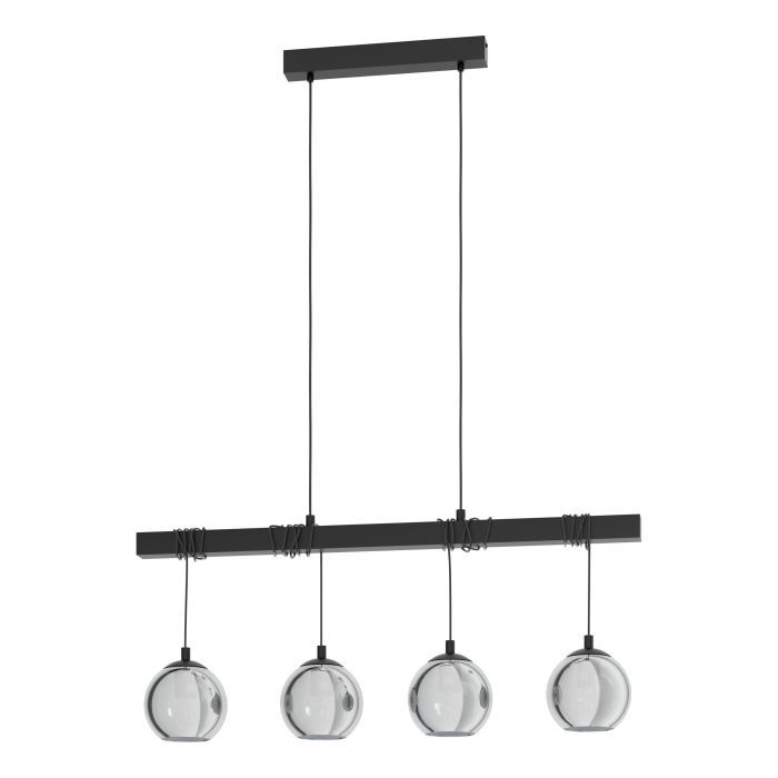 Μοντέρνο Κρεμαστό Φωτιστικό Τετράφωτη 4xE27 L100xH150cm Μαύρο Μέταλλο-Γυαλί Eglo Argallo 39761