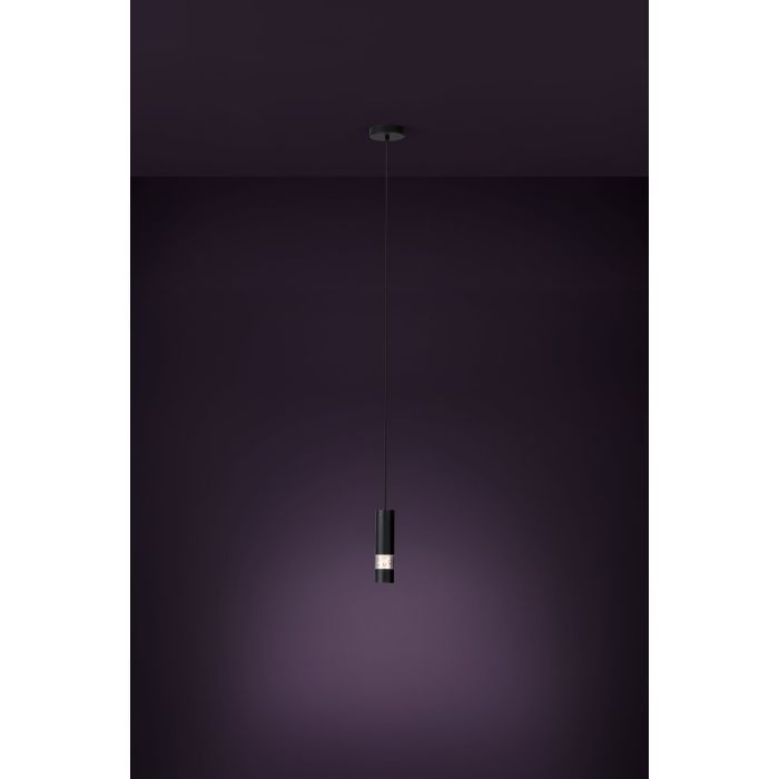 Μονόφωτο κρεμαστό φωτιστικό από την εταιρεία Eglo σε μαύρο χρώμα, με υποδοχή για έναν λαμπτήρα και ντουί GU10.