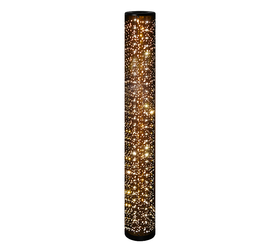 The TACO floor lamp conjures up an extraordinary lighting atmosphere in any environment. Through the fabric screen with cutouts, sparkle golden light effects. The lamp can be conveniently switched on and off via a foot switch. In black matt / gold, the floor lamp rounds off modern furnishing styles optimally. In addition, the luminaire features modern LED technology, which is characterised by high light quality and energy efficiency. Compared to conventional halogen lamps, up to 80% of energy costs can be saved. In addition, LED light sources have a long service life, produce less heat and protect the environment.