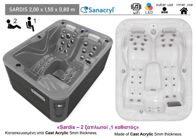 Τα spa της Sanacryl είναι ιδανικά για οικιακή και επαγγελματική χρήση, όπως σε ξενοδοχεία, spa, κέντρα ευεξίας κ.α.