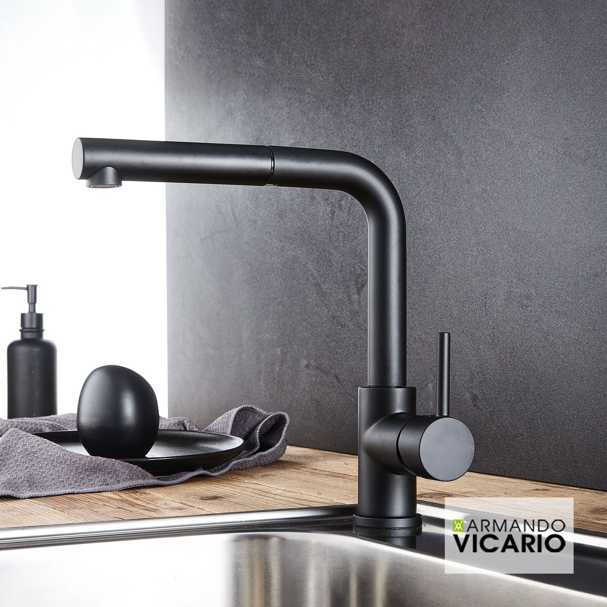 Μπαταρία Κουζίνας Συρόμενο Ντους Armando Vicario Fluo Black Matt 18580-400