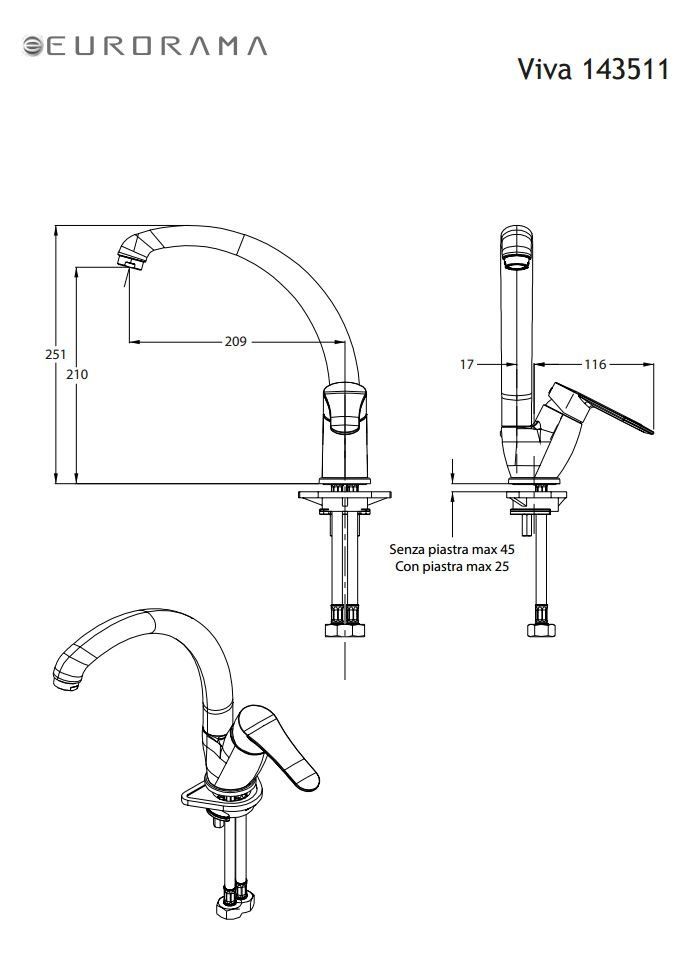 Μπαταρία Κουζίνας Χρωμέ με Ψηλό Περιστρεφόμενο ρουξούνι Eurorama Viva 143511-100