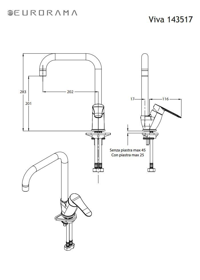 Μπαταρία Κουζίνας Χρωμέ με Ψηλό Περιστρεφόμενο ρουξούνι Eurorama Viva 143517-100