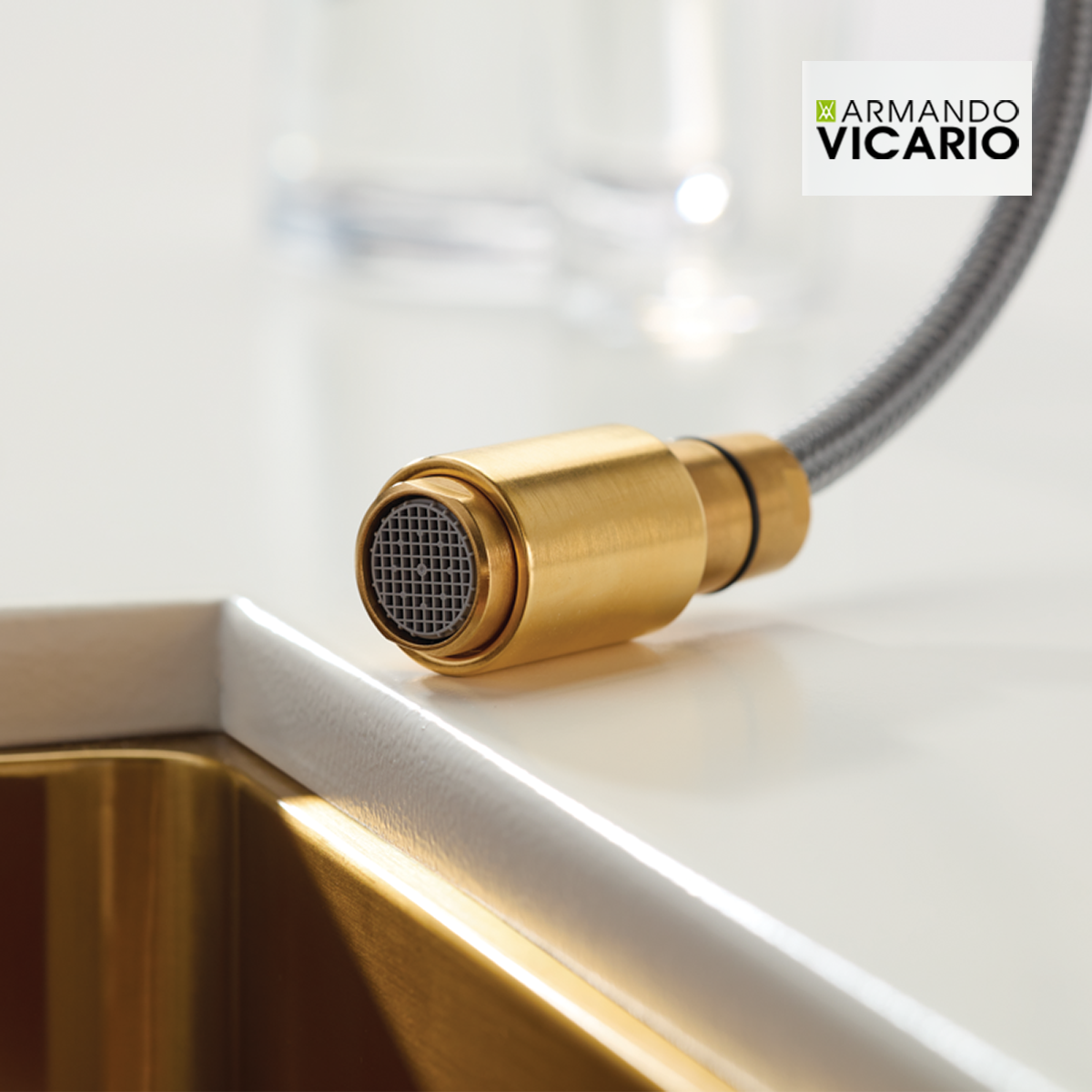 Μπαταρία Κουζίνας Brushed Gold Περιστρεφόμενο ρουξούνι με συρόμενο ντους Armando Vicario Tozo 48780-201