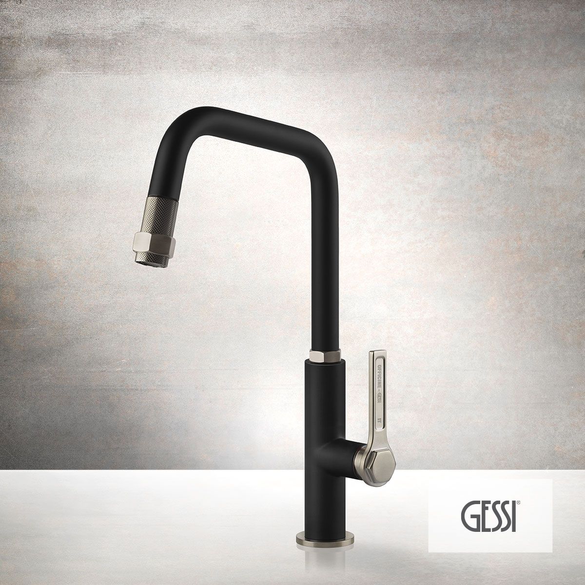 Μπαταρία Νεροχύτη Κουζίνας με Τηλέφωνο Ντους Officine Gessi Inox/Black Matt 60053-599