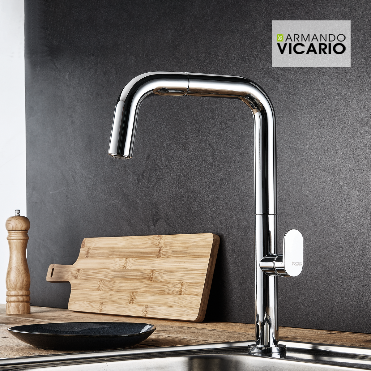 Μπαταρία Νεροχύτη Με Συρόμενο Ντους Χρωμέ Armando Vicario Eva 400746-100