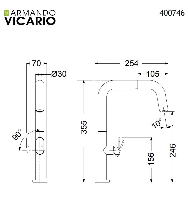 Μπαταρία Νεροχύτη Με Συρόμενο Ντους Antique Brass Armando Vicario Eva 400746-221