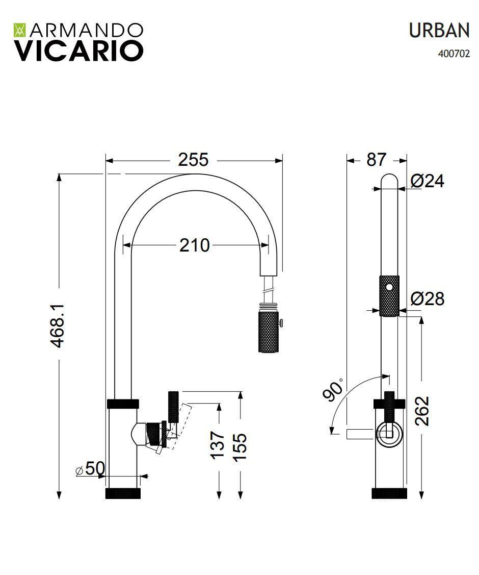 Μπαταρία Νεροχύτη Χρωμέ, Περιστρεφόμενο ρουξούνι με συρόμενο ντους 2 Λειτουργιών (Shower-Spray) Armando Vicario Urban 400702-100