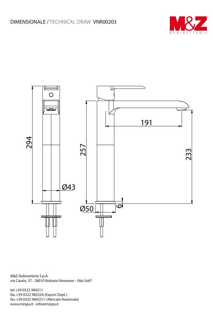 M&Z Ventura VRN0203 Μπαταρία Νιπτήρα Ψηλή Αναμεικτική Χρωμέ.