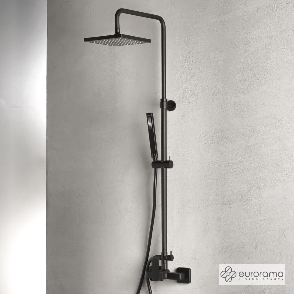 Μπαταρία Ντουζιέρας με Κεφαλή και Κολώνα ρυθμιζόμενου ύψους Quadra Black Matt 144065-400