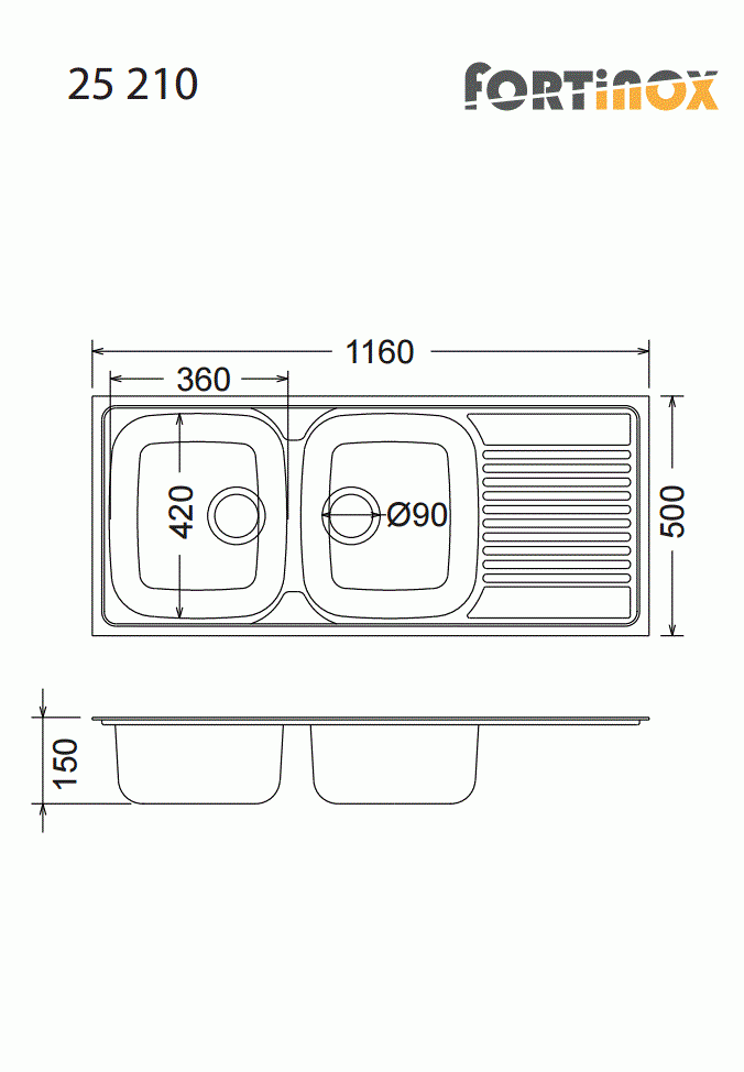 Νεροχύτης Ένθετος 116*50εκ. για ερμάριο 80 εκ.Fortinox Valey 25210