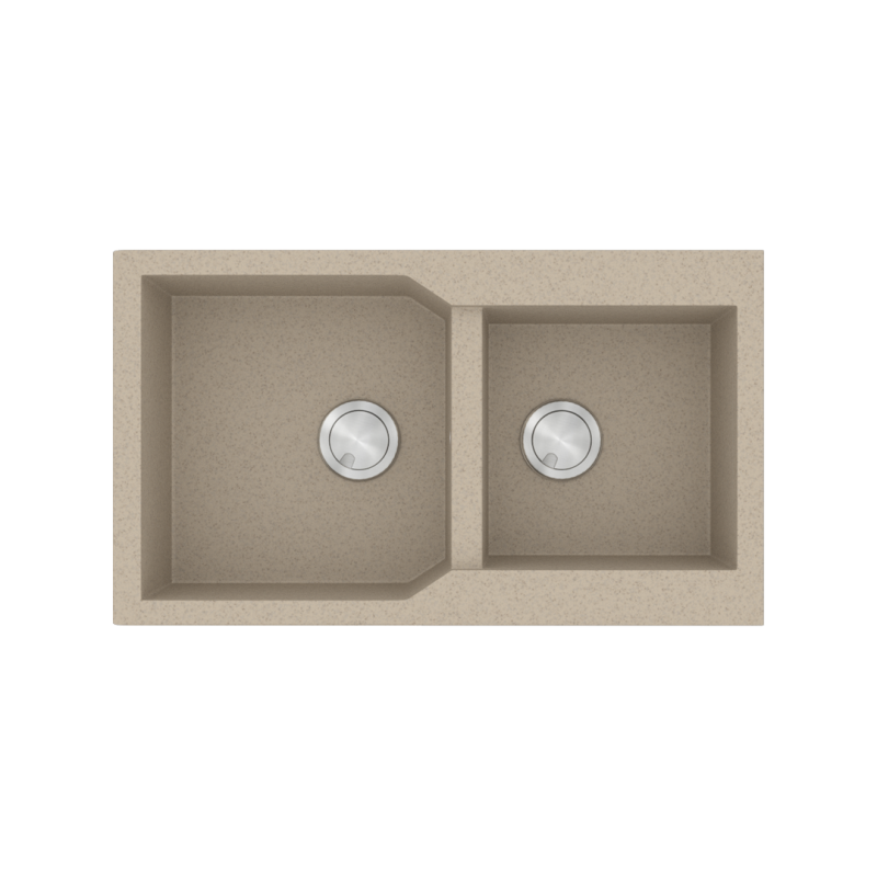 Νεροχύτης Κουζίνας Γρανίτης με δύο γούρνες 86*50 εκ. Χρώμα Sabbia Ένθετος ερμάριο 90 εκ. Sanitec 804