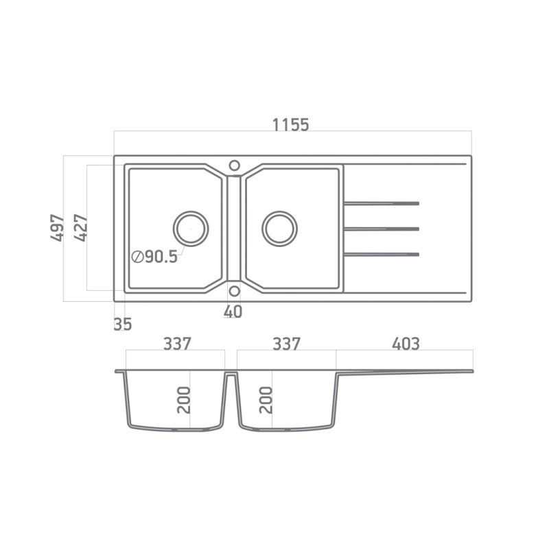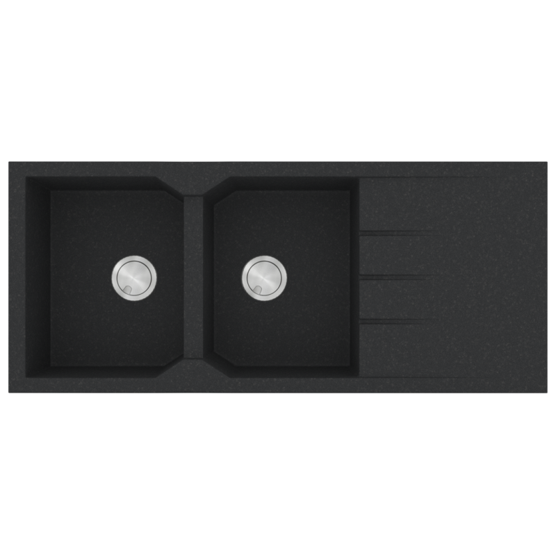 Νεροχύτης Κουζίνας Δύο Γούρνες & Ποδιά 116x50cm Ένθετος Ερμάριο 80cm Sanitec Ultra Granite 800-36-Grafite