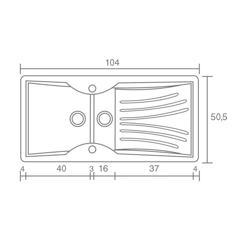 Νεροχύτης Κουζίνας Συνθετικός 104x51cm Ένθετος Eρμάριο 70cm Sanitec Classic 329-14-Metallic-Ice