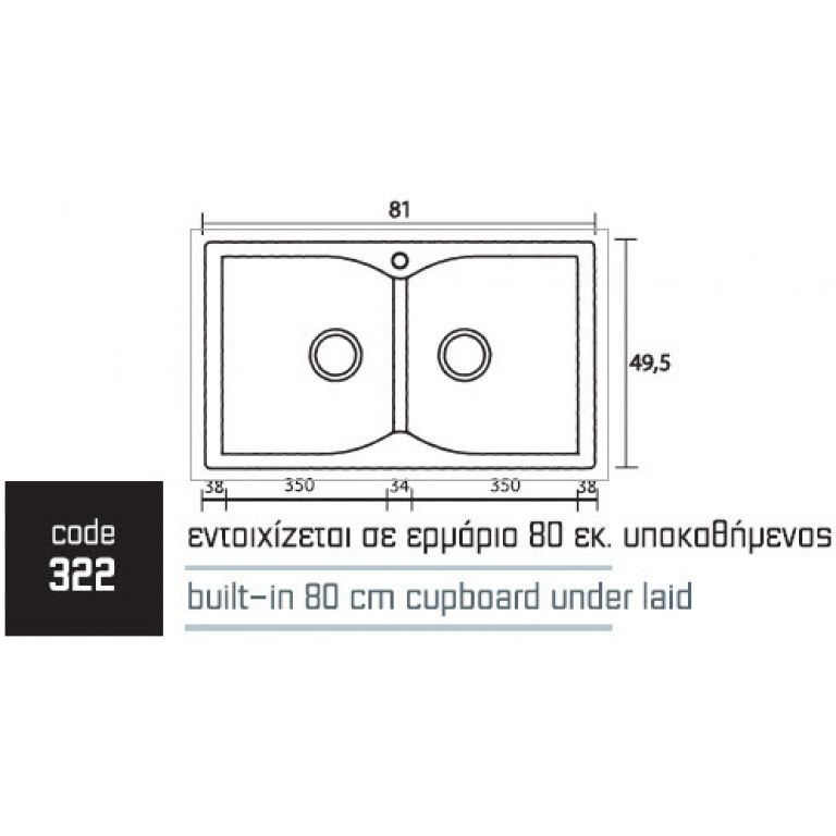 Περιγραφή: Νεροχύτης ένθετος αντιστρεφόμενος με δύο γούρνες