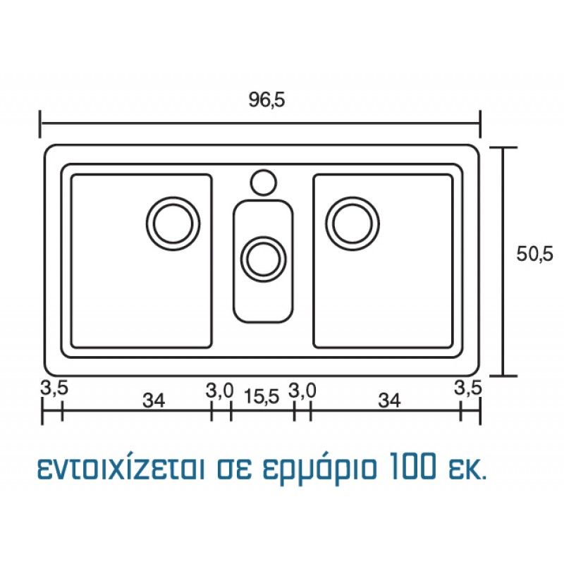Περιγραφή: Νεροχύτης ένθετος δύο γούρνες
