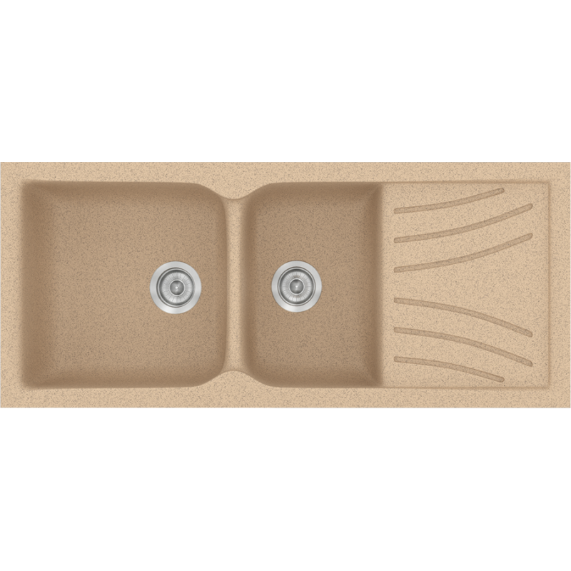 Νεροχύτης Κουζίνας Συνθετικός Granite Beige 115*50 εκ. Ένθετος Eρμάριο 80 εκ. Δύο γούρνες & Ποδιά Sanitec Electric 323