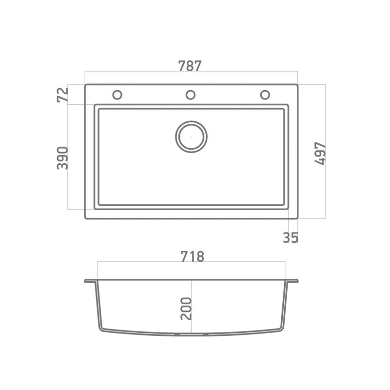 Νεροχύτης Κουζίνας Συνθετικός Granite Celtic Stone 79x50 εκ. Ένθετος Eρμάριο 80 εκ.Sanitec Classic 333-46