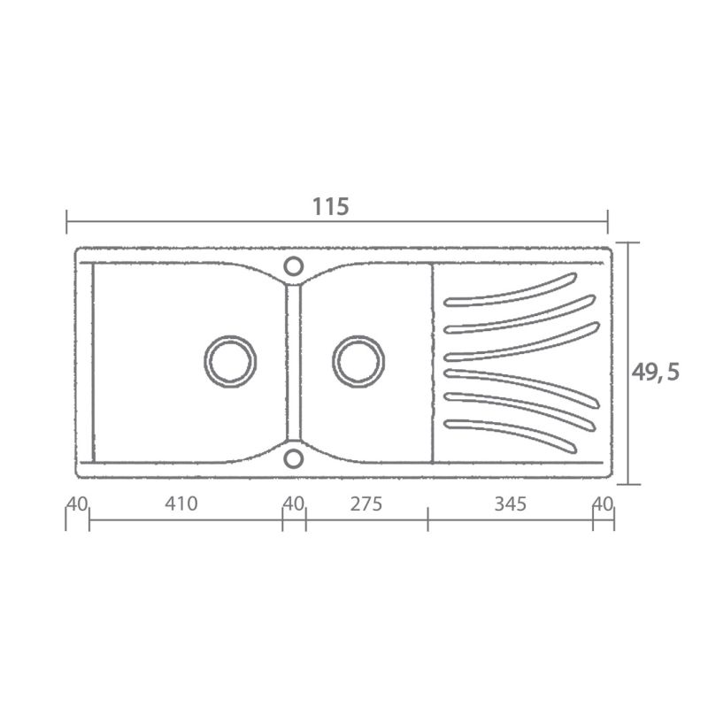 Περιγραφή: Νεροχύτης ένθετος αντιστρεφόμενος με δύο γούρνες & ποδιά