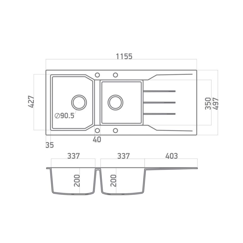 Εργονομικός αντιστρεφόμενος σχεδιασμός με 2 ανόμοιες γούρνες, επιφάνεια αποστράγγισης & άνετο περιθώριο για επιπλέον τοποθέτηση dispenser.