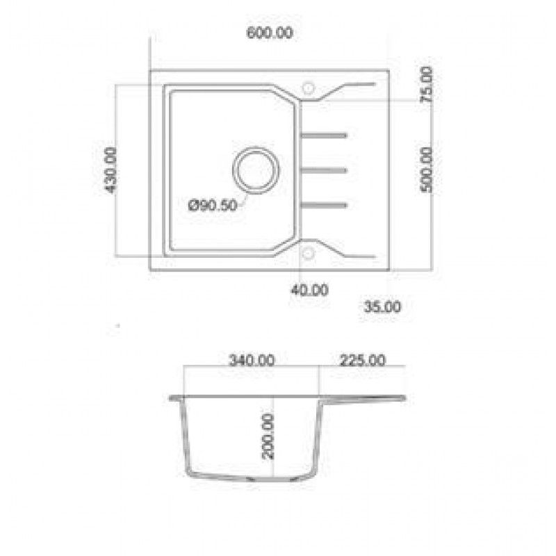 Νεροχύτης κουζίνας από φυσικό ορυκτό γρανίτη & συνθετικές ρητίνες.
