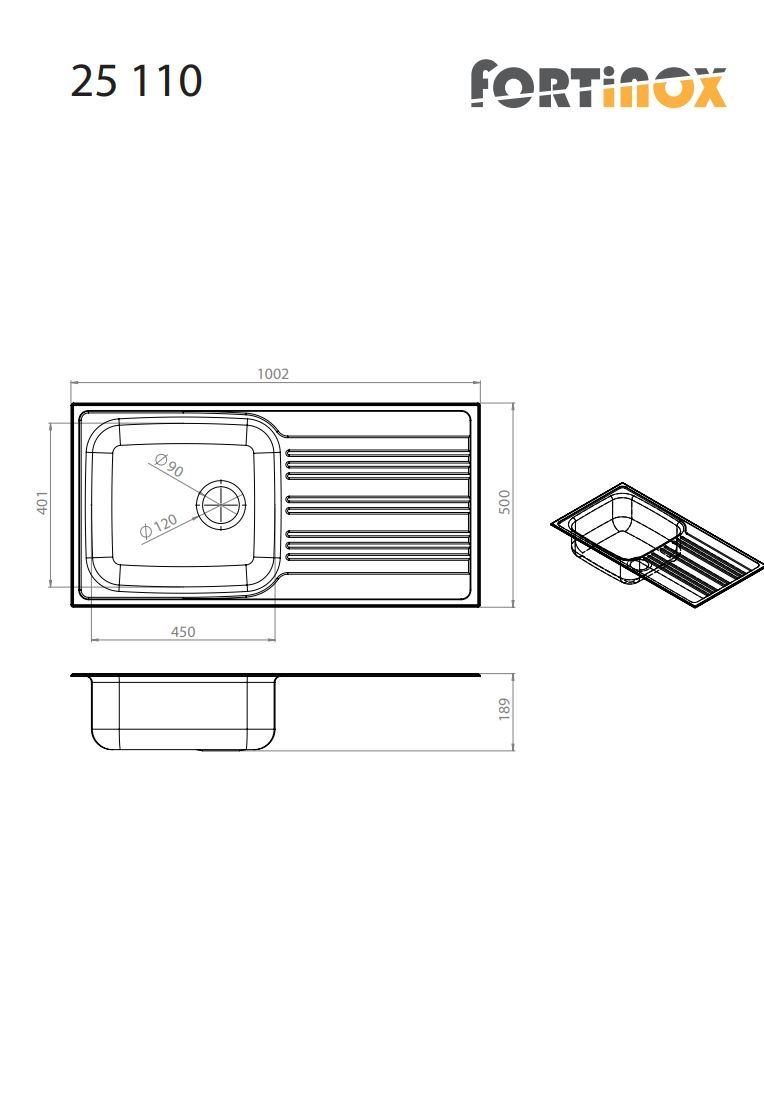 Νεροχύτης Λείος με ποδιά 100*50 εκ. Ένθετος για ερμάριο 60 εκ. Ανοξείδωτος Χάλυβας 18/10 Fortinox Valley 25110