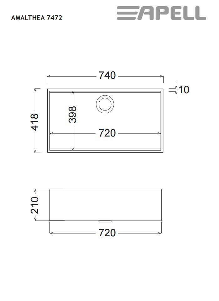 Νεροχύτης Υποκαθήμενος 74*41,8 εκ. για ερμάριο 80 εκ. Apell Amalthea 7472-110