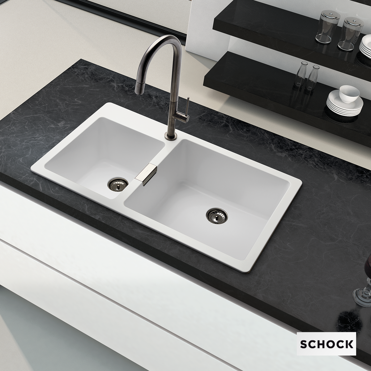 Νεροχύτης Ένθετος Ερμάριο 86 εκ.50 εκ.Γρανίτης Polaris Schock Cristadur Mono 15290-1302