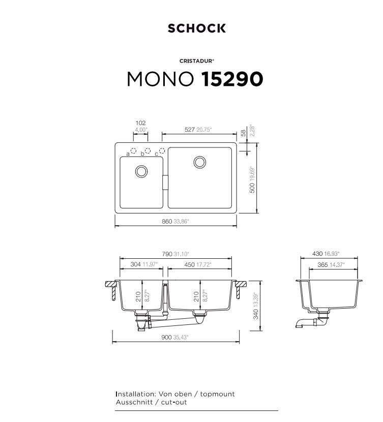 Νεροχύτης Ένθετος 86x50cmΕρμάριο 90cm Γρανίτης Bronze Schock Cristadur Mono 15290-1221
