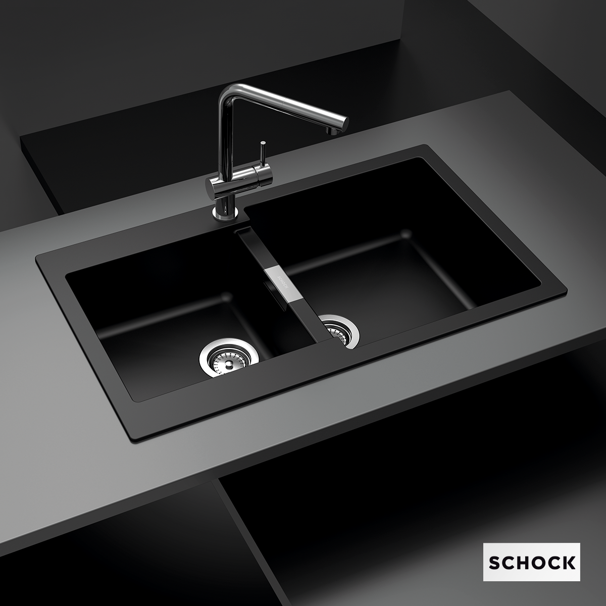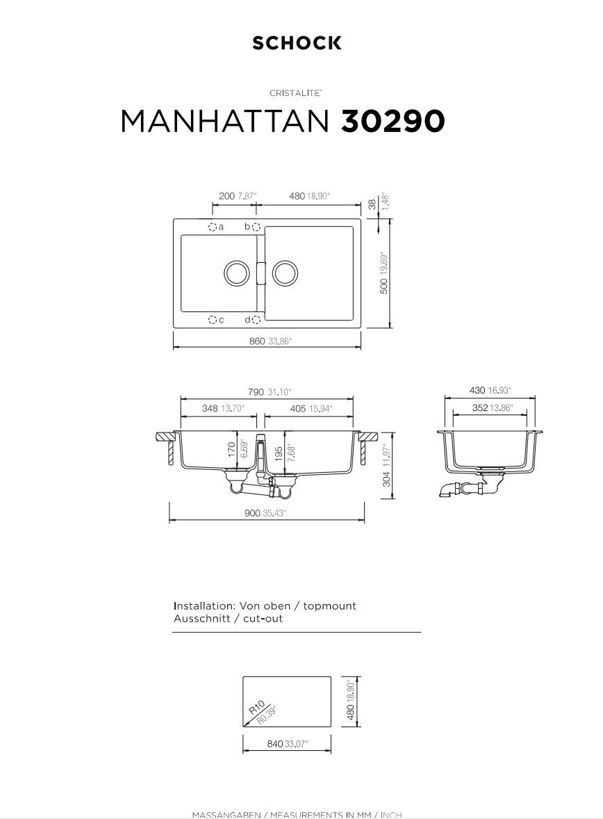 Νεροχύτης Ένθετος 86x50cm Ερμάριο 90cm Γρανίτης Nero Schock Cristalite Manhattan 30290-1511