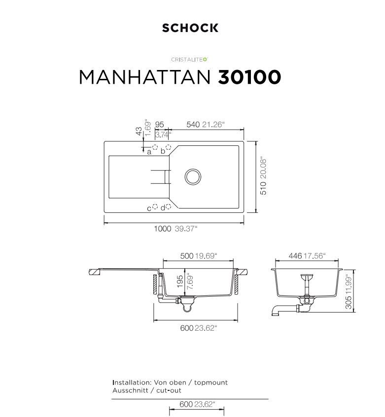 Νεροχύτης Ένθετος M100xΠ51 εκ.Γρανίτης Nero Schock Cristalite Manhattan 30100-1401
