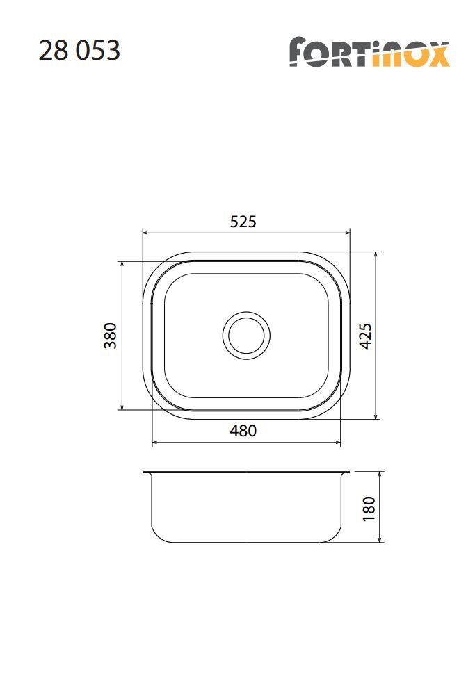 Νεροχύτης 52,5x42,5 εκ. Υποκαθήμενος για ερμάριο 60εκ., Λείος, Ανοξείδωτος Χάλυβας Fortinox Valey 28053-110