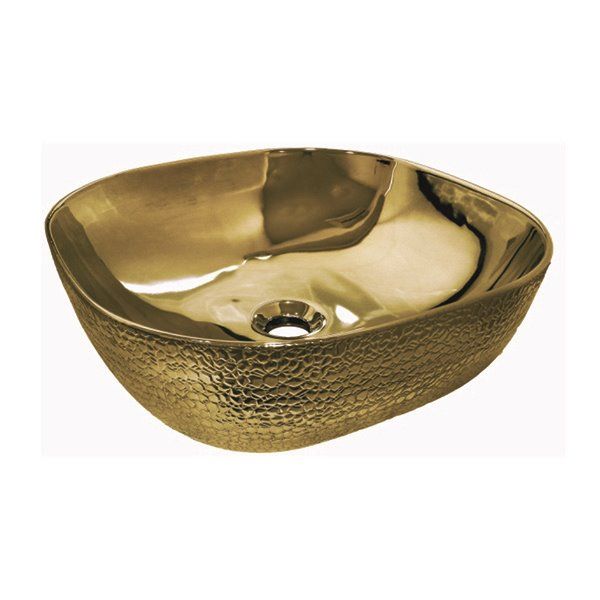 Νιπτήρας Κεραμικός Ετιτραπέζιος 42,5*42,5*14,5 εκ. Χρυσό εσωτερικά Χρυσό Κροκοδειλέ εξωτερικά Domistyle Luxury R1301B