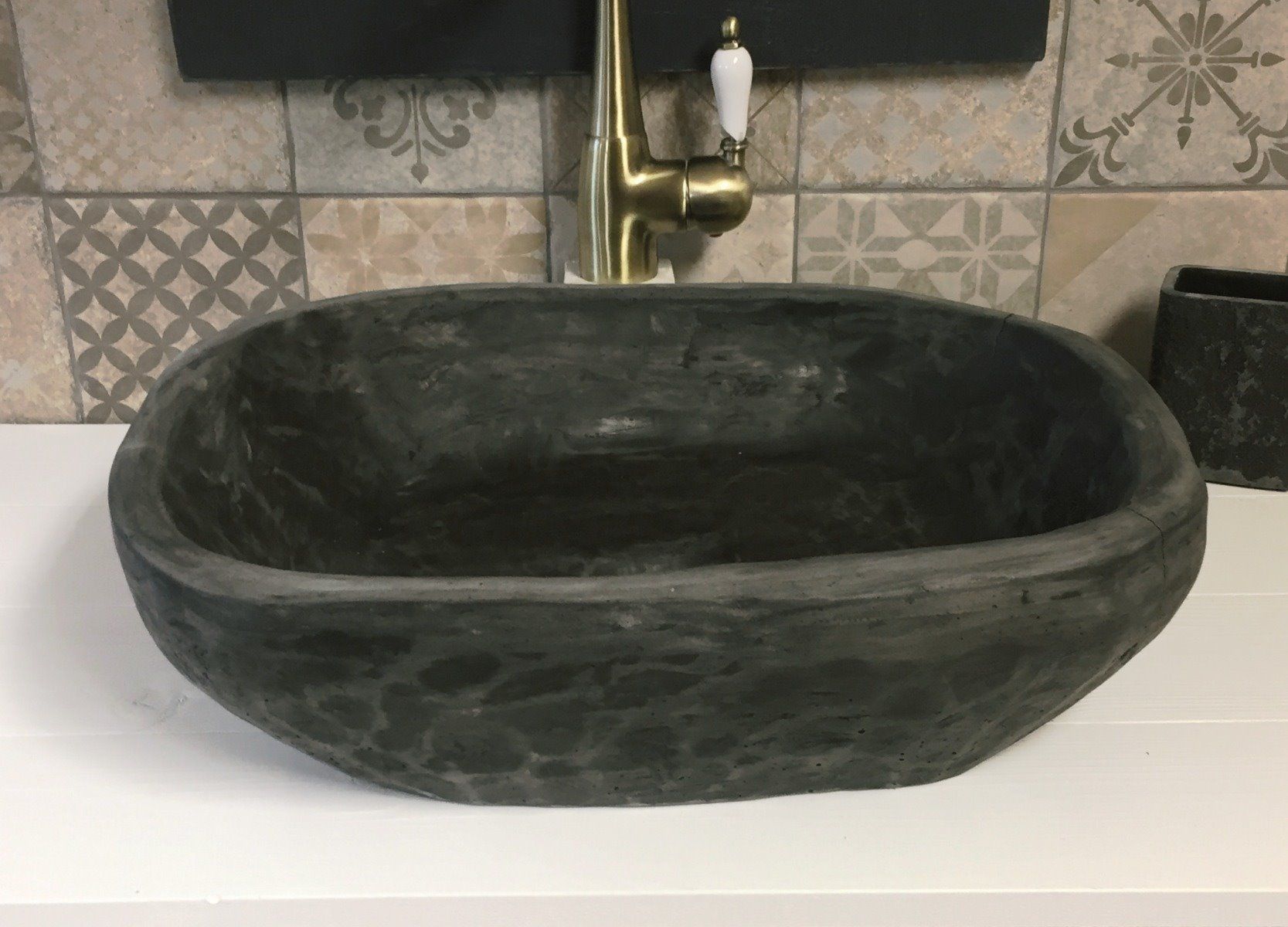 90021 Travertino "ΑΤΛΑΣ" Χειροποίητος Επικαθήμενος Νιπτήρας 48,5*38*13,5 εκ. Μαύρος .