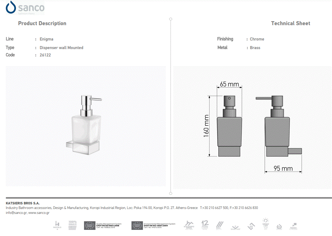 Αίνιγμα σημαίνει η περιγραφή των χαρακτηριστικών ενός αντικειμένου, με τρόπο ώστε ο ακροατής να μπορέσει να το μαντέψει σωστά. Η σειρά Enigma της sanco, περιλαμβάνοντας αρκετά πολλαπλά αξεσουάρ, καλύπτει άριστα και έξυπνα τις ανάγκες μπάνιων για ξενοδοχεία και κατασκευές. Ταυτόχρονα όμως, χαρακτηρίζεται από το δυναμικό, σύγχρονο σχεδιασμό της, που την κάνει περιζήτητη για χρήση σε μπάνια με υψηλή αισθητική