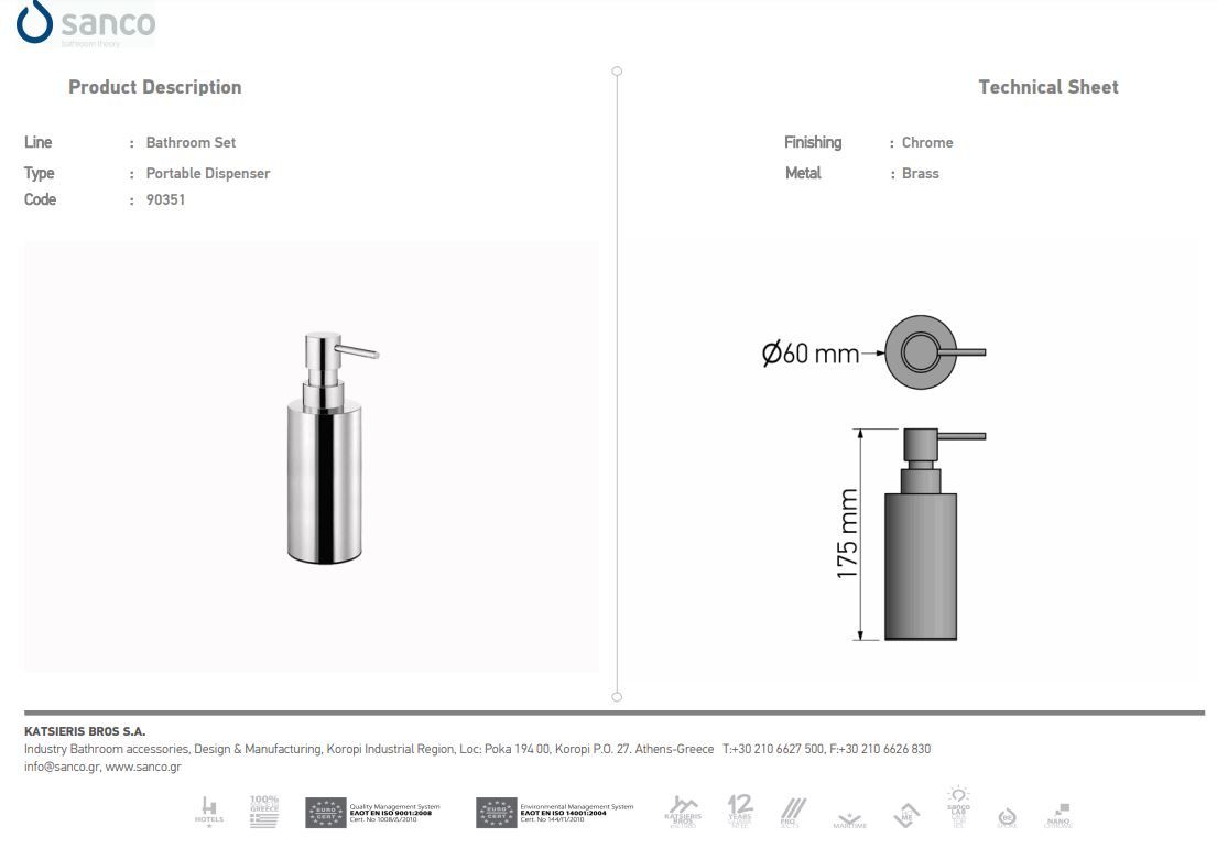 Ντισπένσερ Dispenser Επικαθήμενο 500ml Sanco Metallic Bathroom Set 90351-Α03-500