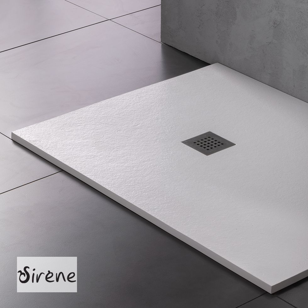 Ντουζιέρα Cast Marble (Χυτό μάρμαρο) με Βαλβίδα Slate 140x80 Sirene White Matt S14080-301