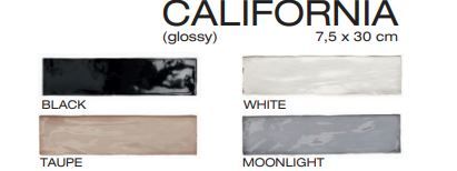 Το πλακάκι της σειράς California διατίθεται στις αποχρώσεις: Black, Moonlight, Taupe, White