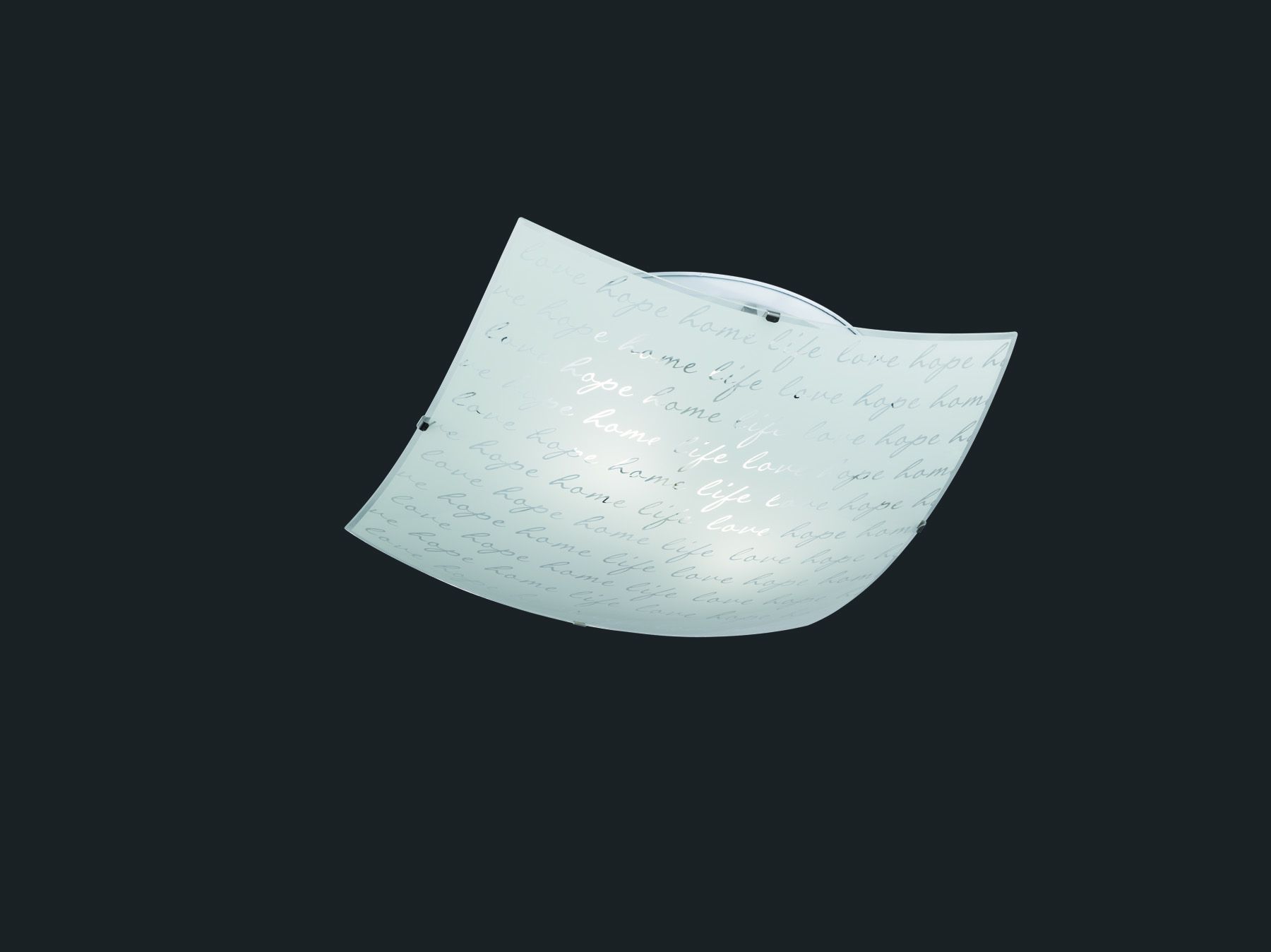 A soft light is emitted via the frosted glass with clear lettering ''Hope.Home.Life.Love.'' and fills your living rooms and bedrooms with individual lighting accents.