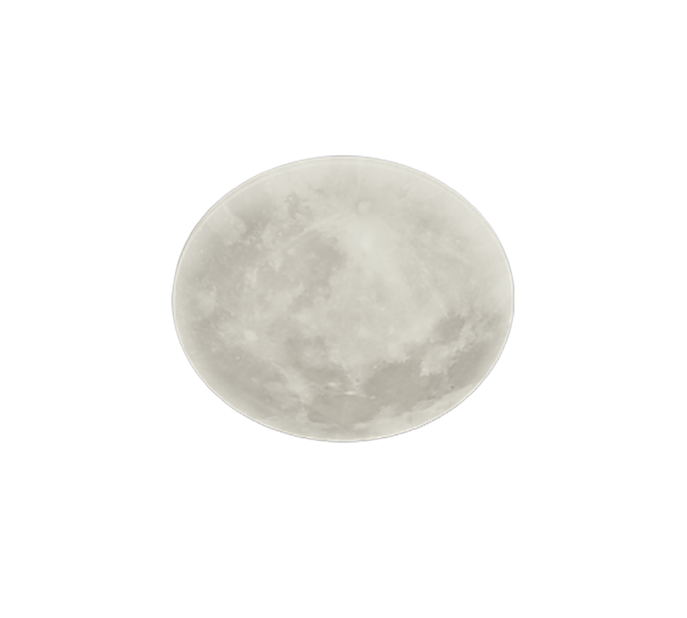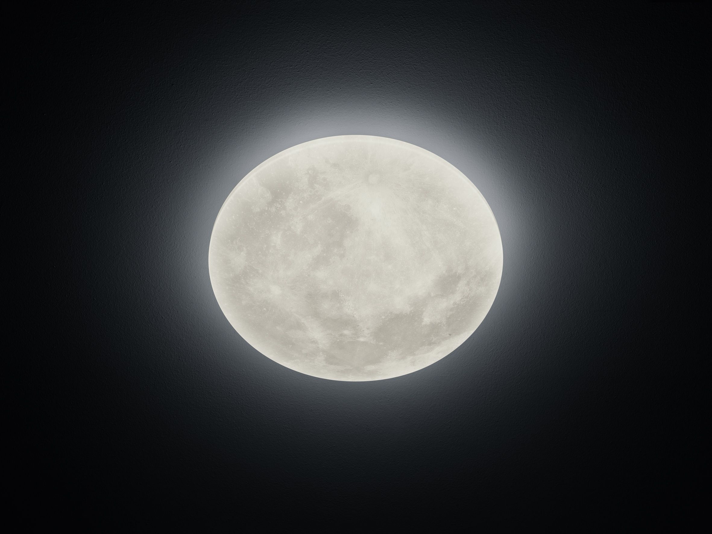 The cover of the ceiling light has a slightly grey-brownish shimmering texture that is reminiscent of the surface of the moon.