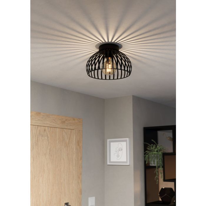 Πλαφονιέρα οροφής της Eglo σε μαύρο χρώμα. Διαθέτει ντουί για λαμπτήρες E27.