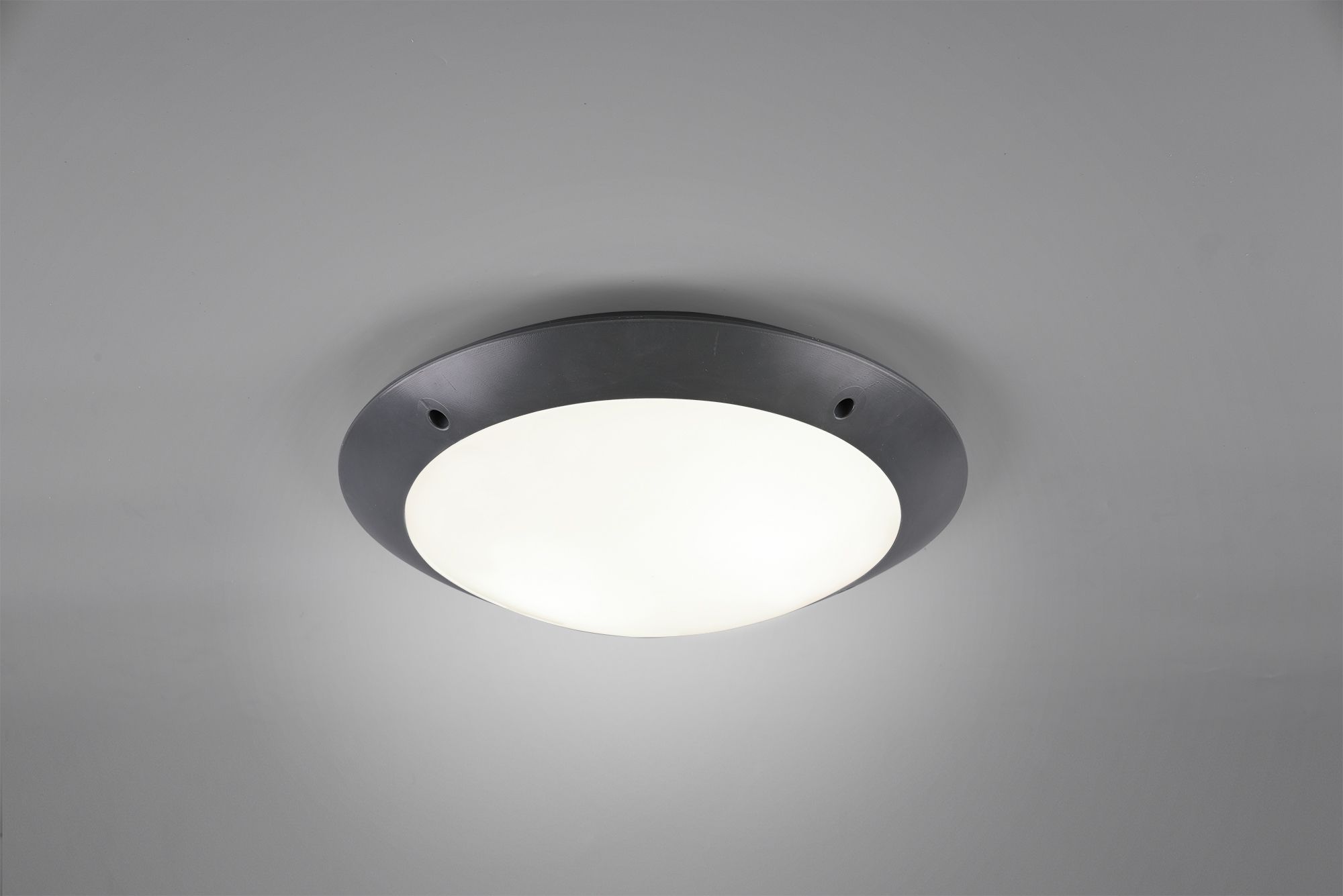 The simple design and neutral color scheme with anthracite-colored edge and matt white plastic shade offer numerous application and combination options.