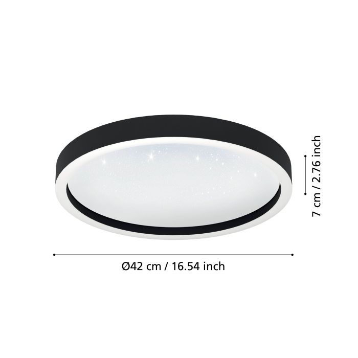 Πλαφονιέρα Οροφής Μαύρη 42xH7cm LED 2700-6500K 2150lm Εφαρμογή-Τηλεχειριστήριο Eglo Montemorelos-Z 900411