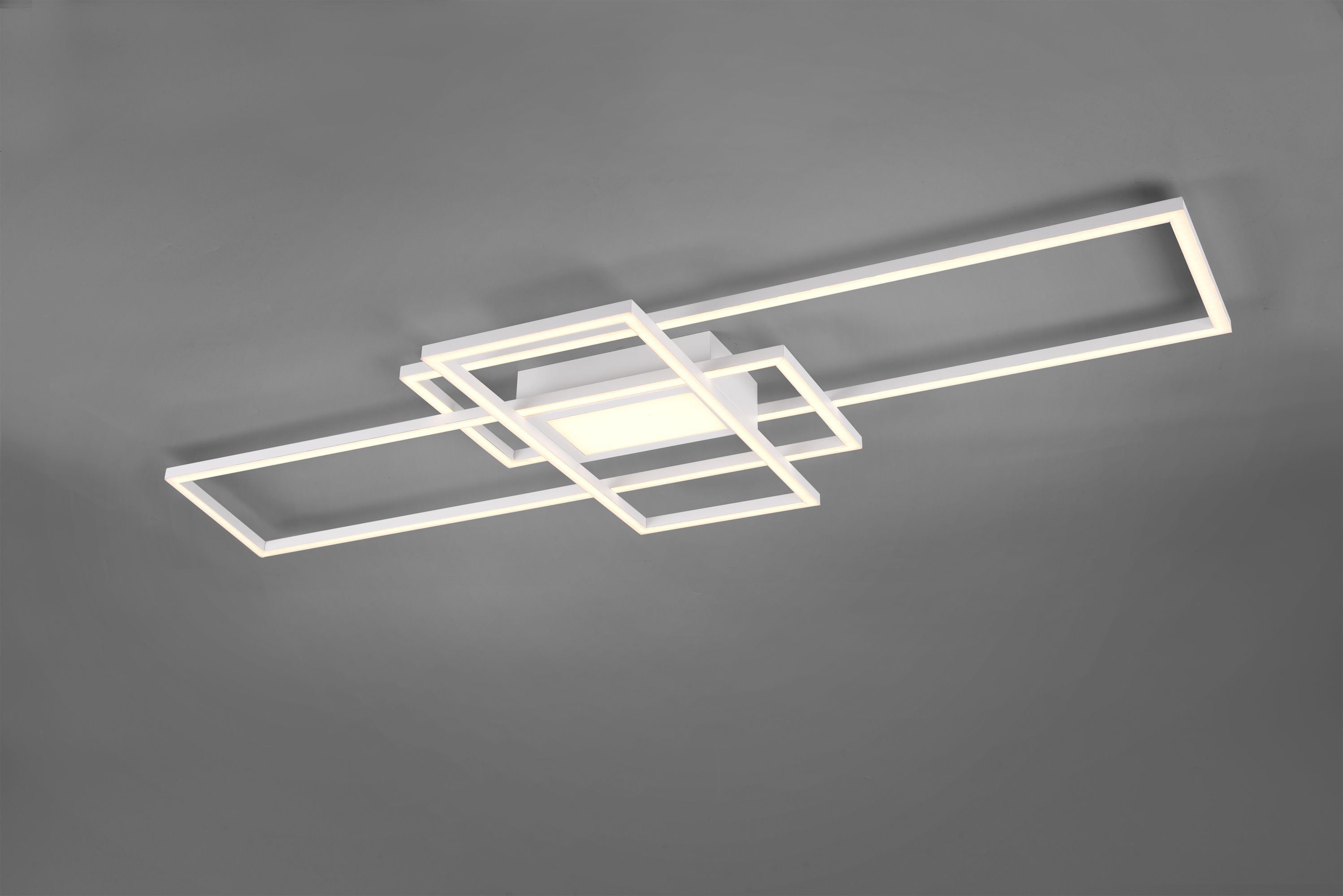 The modern ceiling light has a height of 6.5 cm and a width of 105 cm. Designed in matt white, the light can be combined with many furnishing styles.