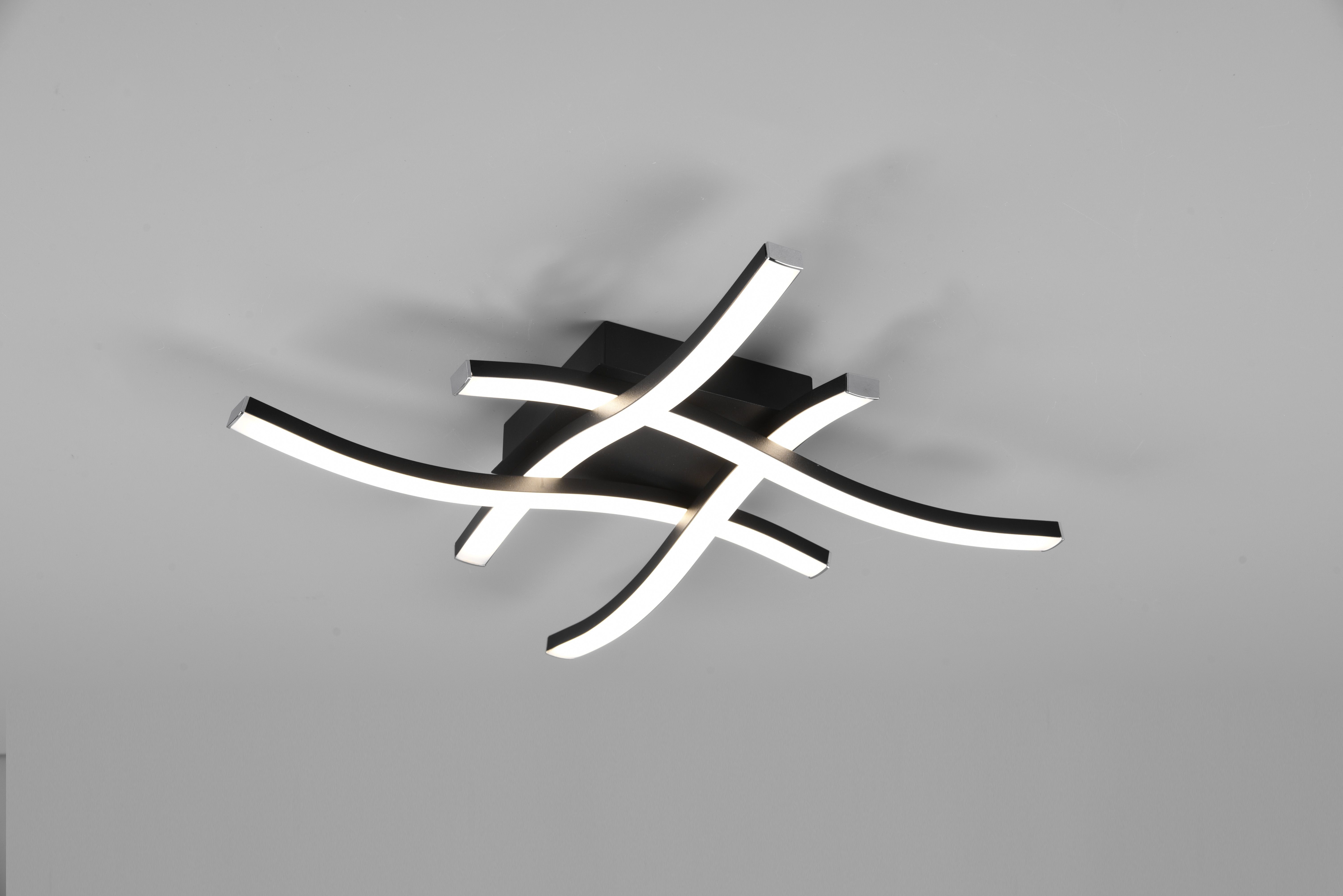 The ROUTE ceiling light impresses with its modern and elegantly curved design.