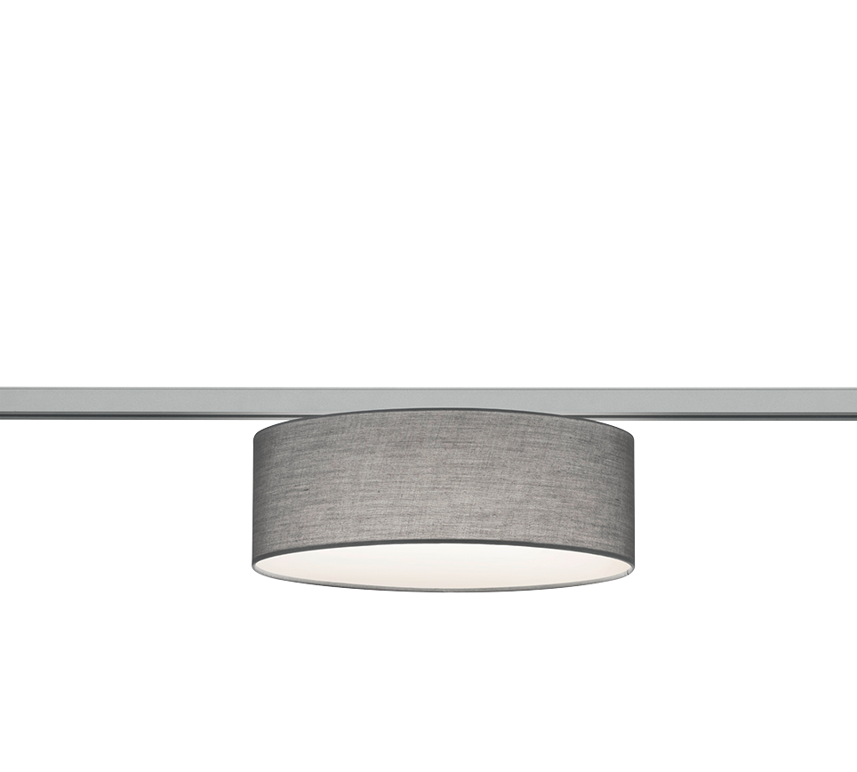 Μοντέρνα πλαφονιέρα οροφής της Trio Lighting σε γκρι χρώμα, από ύφασμα. Διαθέτει ντουί για λαμπτήρες E27.