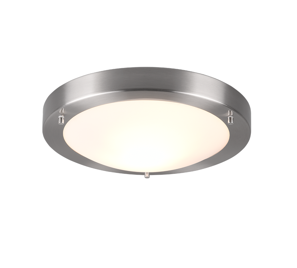 The combination of metal in matt nickel and opal matt white glass fits into any living area.