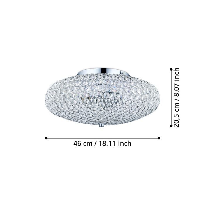 Πλαφόν Οροφής Ø450xH205mm Τρίφωτο 3xE27 Ατσάλι Χρωμέ-Κρυσταλλάκια Eglo Clemente 95285